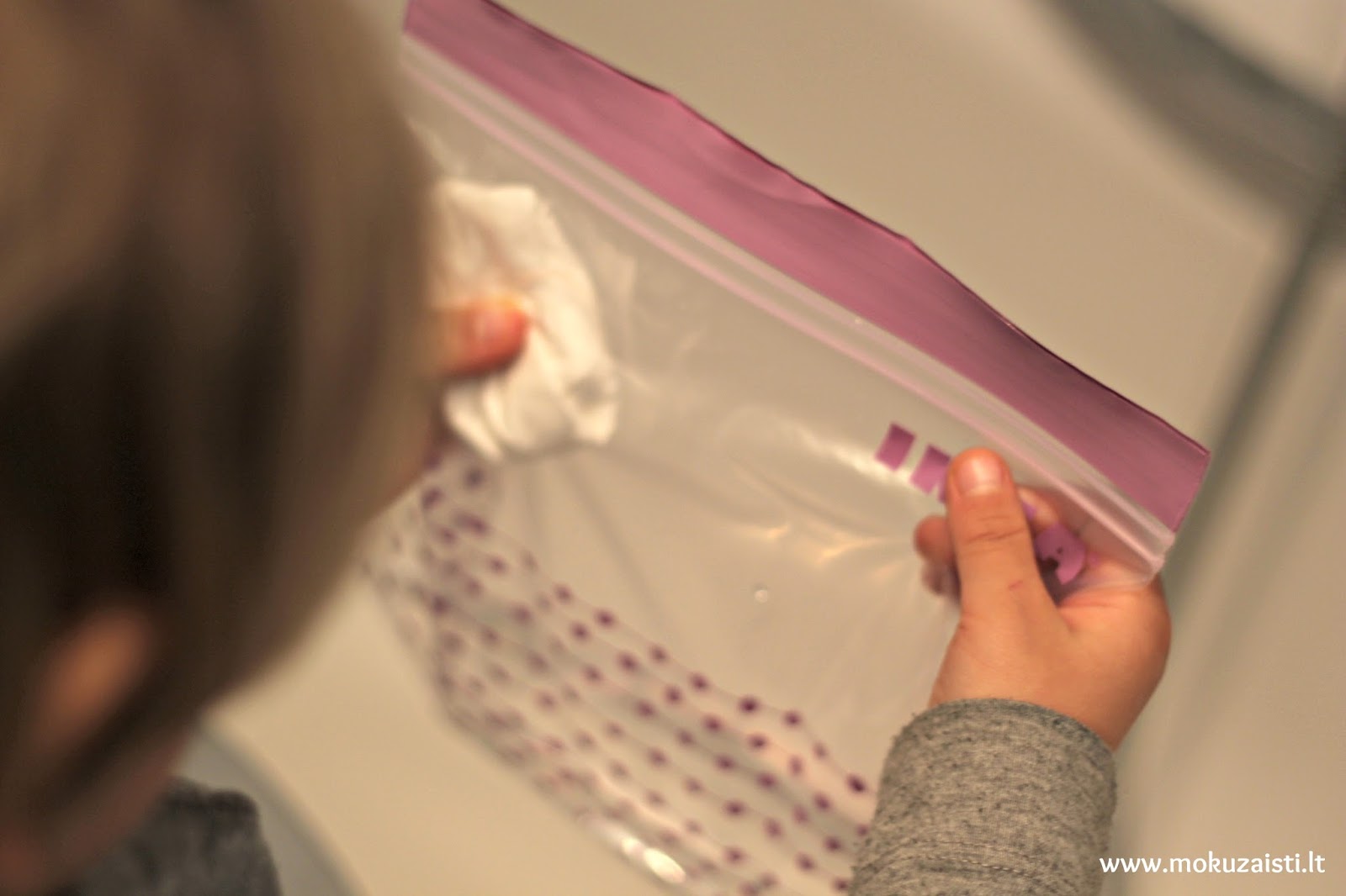 - Plastikinio užsegamo maišelio (delno dydžio);