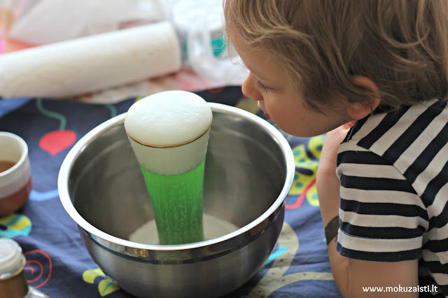 Įvairūs eksperimentai yra vienas tų užsiėmimų, kuris visų pirma patinka man pačiai, todėl labai didelės motyvacijos kažką naujo išbandyti su sūnumi ieškoti nereikia. Paprastų eksperimentų su Kasparu esu išbandžiusi ir anksčiau, pavyzdžiui, gaminome