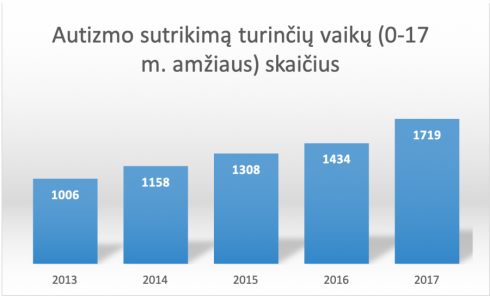 Higienos instituto [4] duomenimis, 2017 m. autizmo sutrikimus turinčių vaikų buvo per 1700 (žr. 2 pav). Tačiau duomenys  netikslūs, nes jie surinkti tik iš asmens sveikatos priežiūros įstaigų. Vaikų, kurie nesilankė minėtose įstaigose, statistikoje nėra. Be to, tik dešimt metų Lietuvoje veikia efektyvi ankstyvos autizmo diagnostikos sistema, iki tol autizmo diagnozė buvo nustatoma retai ir ne visada tiksliai. Todėl duomenys atspindi geriausiu atveju nuo 2010 m. diagnozuotus atvejus. Taigi galima teigti, kad realiai Lietuvoje autizmo sutrikimus turi 5–8 tūkst. vaikų iki 17 m. amžiaus. Kita vertus, 2013–2017 metų naujai nustatytų autizmo sutrikimų duomenys rodo, kad autizmo sutrikimų Lietuvoje daugėja sparčiau nei pasaulyje ir per artimiausius 5–10 metų autizmo sutrikimus turinčių vaikų oficialus skaičius irgi sieks 1,5–2 proc., o tai reiškia, kad autizmo sutrikimus Lietuvoje turės apie 10 tūkst. vaikų, ir šis skaičius nuolat didės.