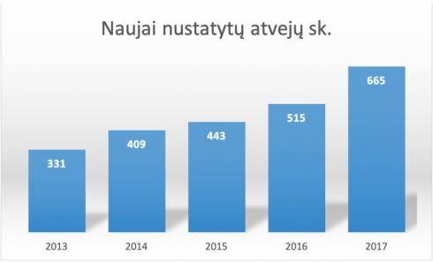 Remiantis Lietuvos statistikos šaltiniais [1, 2, 3, 4], matyti, kad skaičiai irgi didėja. Higienos instituto duomenimis [4], pastaraisiais keleriais metais naujai nustatomų autizmo sutrikimo atvejų kasmet yra per 500. Lyginant 2013 ir 2017 metų skaičius – jie išaugo dvigubai (žr. 1 pav.).