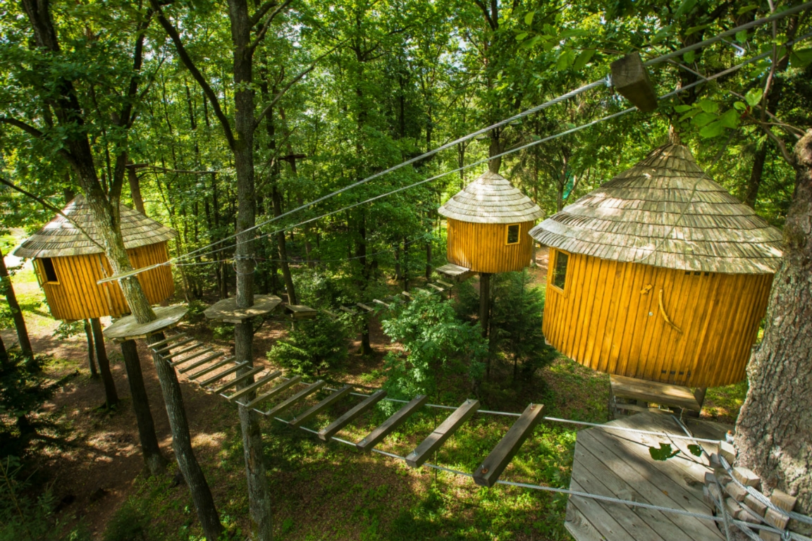Taurų nuotykių parkas Jus nustebins neeiliniu viešbučiu – nakvyne medyje! Nameliai įrengti medžiuose 6-7 m. aukštyje. Šiuo metu galime pasiūlyti net tris dviviečius namelius bei du dviviečius kambarius administracinėse patalpose. Nakvynė šiame viešbutyje suteiks galimybę nors trumpam susilieti su gamta ir tapti jos dalimi. Bent kartą pabandžius, abejingų nelieka!