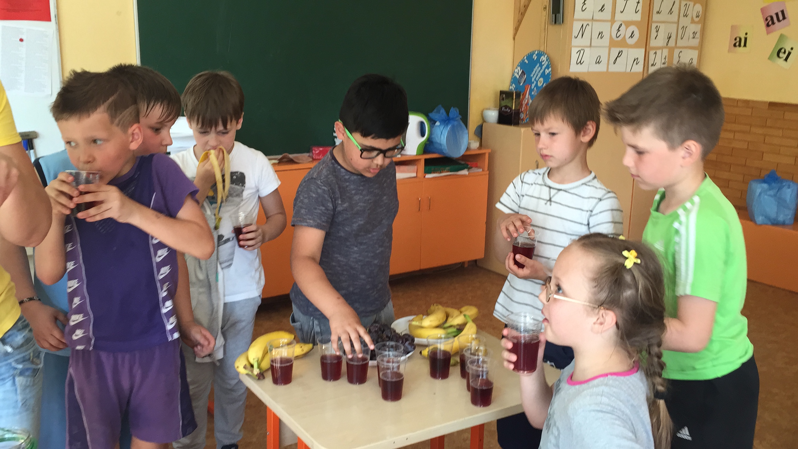 Tarp jų net 3 proc. antrokų teigė, kad vaisius ir daržoves vartoja rečiau nei kelis kartus per savaitę. Projekto pabaigoje pakartotinai atlikti tyrimai. Apklausos parodė, kad susidomėjimas natūralių vitaminų vartojimu išaugo nuo 42 proc. iki 55 proc. mokinių šeimose, kuriose vartoja vaisius ir/ar daržoves nuolat, gerindami savo šeimos sveikatą. Į klausimą, ką dažniasiai vaikai norėtų valgyti namuose, mokiniai atsakė, kad dažniausiai namuose norėtų valgyti obuolius (26 proc.), o rečiausiai citrusinius vaisius (10 proc.). Bananus norėtų valgyti apie 17 proc., kriaušes apie 15 proc, morkas 14 proc, agurkų ar kitų daržovių salotas apie 13 proc. respondentų, o pomidorus tik 7 proc. Mokiniai taip pat minėjo, kad namuose norėtų daugiau valgyti kopūstų, burokėlių, daržovių salotų bei vynuogių.