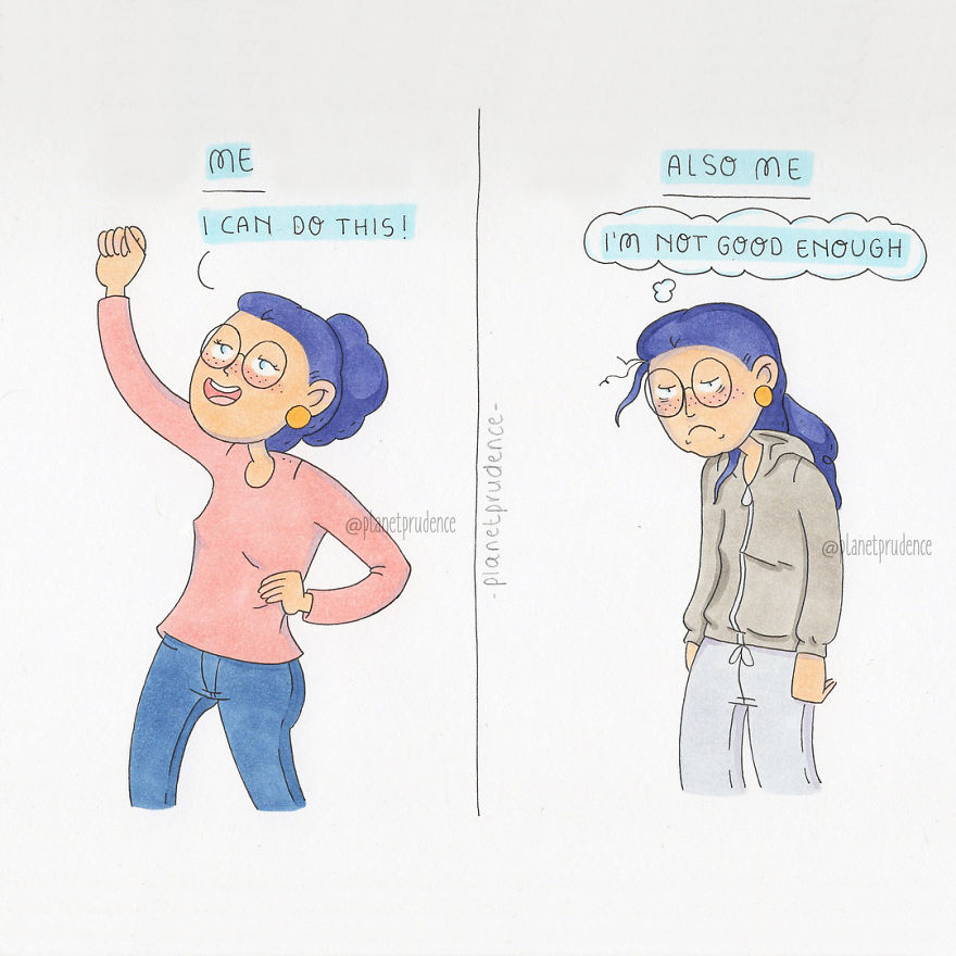 Nuolatinė kova su savimi – su tuo susiduria beveik kiekviena moteris. Pateikiame iliustracijas, kuriose save atpažįsta ne viena moteris.
