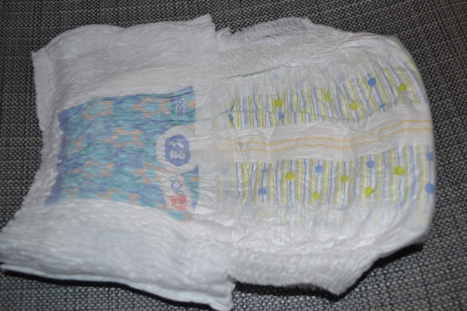 Grįžus namo, po mankštos iš karto pradėjau ieškoti informacijos ir pačios pirmos sauskelnės, kurias aš nusipirkau buvo Moony newborn. Jos tikrai man labai patiko. Gimus dukrai naudojome tik jas ir gavus promo kūdikio dėžutę ir pabandžius ten įdėtas sauskelnes sutrikau… Pasirodo ant daugelio rinkoje esančių mažų dydžių sauskelnių net gi nebuvo išpjauta vieta bambagyslei! Neliesti bambagyslės ir jos neuždengti yra labai svarbu, kad bambytė užgytų sėkmingai.