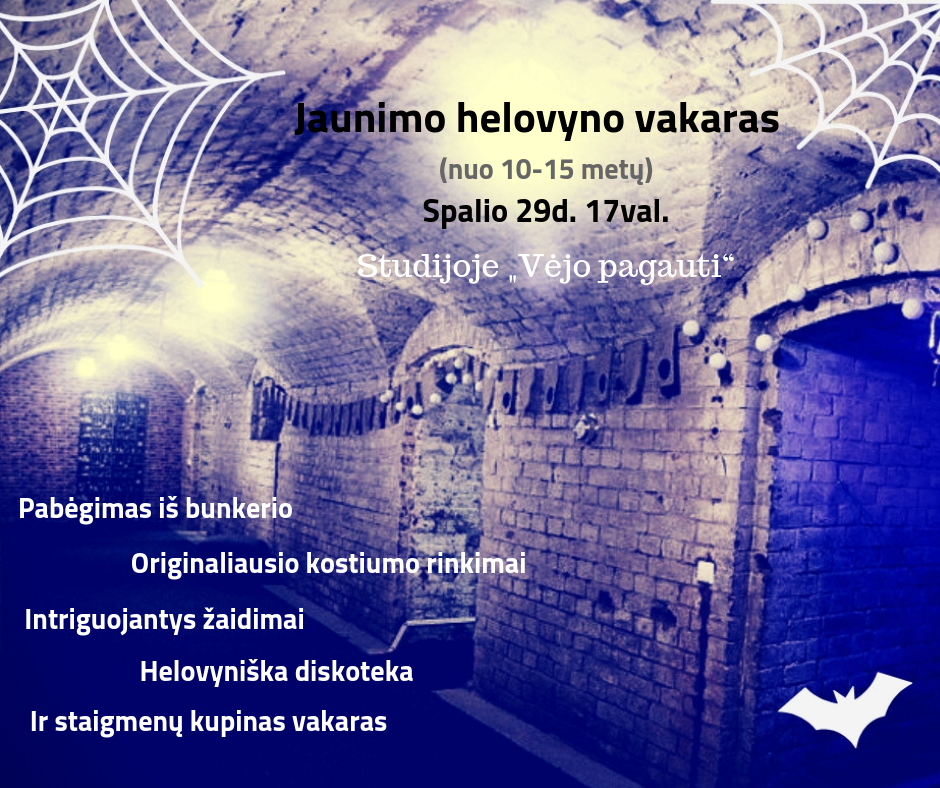Helovyno vakarėlis jaunimui nuo 10 metų iki 15 metų.