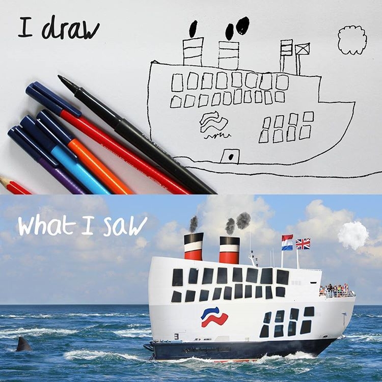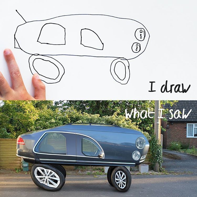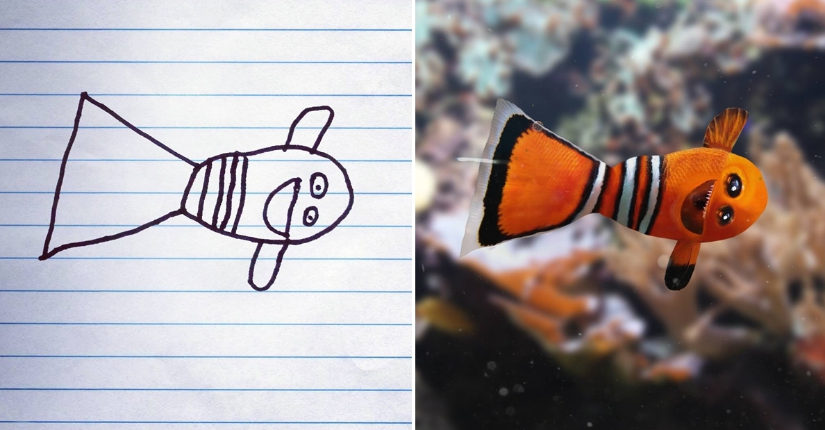 Kai piešinys būna paviešintas, vaiko tėtis tęsia darbą. Pasitelkęs grafinį dizainą ir kompiuterinių manipuliacijų meną, jis Domo nupieštus objektus perkelia į realų pasaulį. Šiek tiek humoro bei skaitmeninės magijos, ir kūriniai virsta dar niekada nematytais fantastiniais gyvūnais ar žmonėmis.