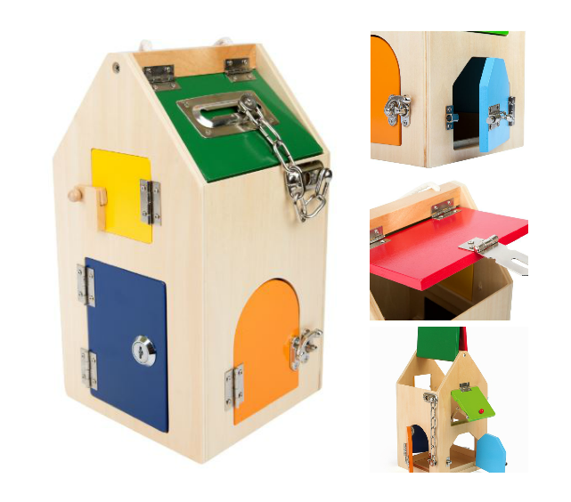 Niekas nepaneigs, kad raktai, spynos ir užraktai traukia mažus vaikus, kaip magnetai. O lavinamojo žaislo „Spynų namas“ populiarumas tai tik patvirtina. Šis žaislas pagamintas iš kokybiško, vaikui saugaus medžio, nuspalvintas pastelinėmis spalvomis, o jame integruoti įvairūs užraktai ir spynos. Žaidžiant su šiuo žaislu lavinama smulkioji motorika, mokomasi spręsti problemas ir vyksta puikios įvairių užraktų atrakinimo treniruotės.