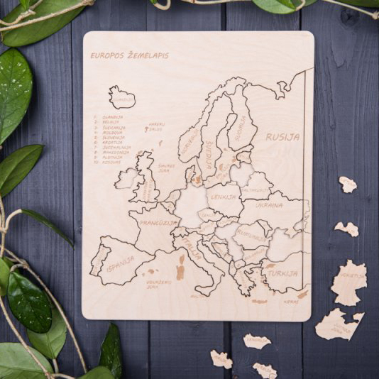 Dėlionė pagaminta iš aukštos kokybės beržo faneros.